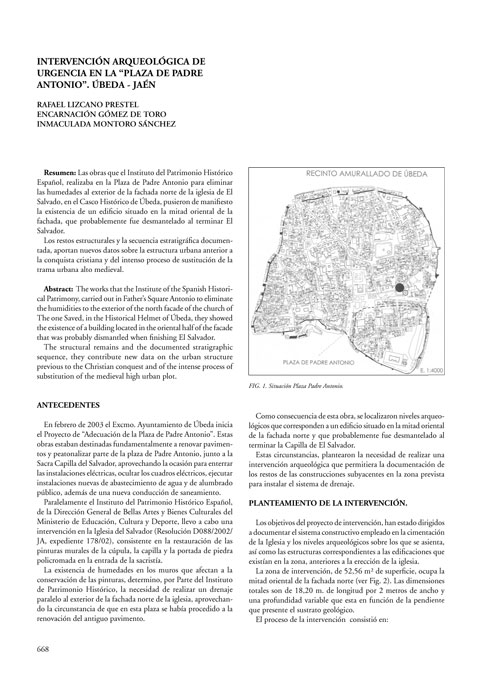 Plaza del Padre Antonio - Intervención arqueológica de urgencia / Anuario Arq. de Andalucía 2003